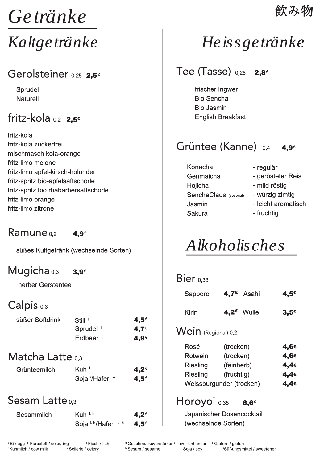 Speisekarte